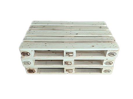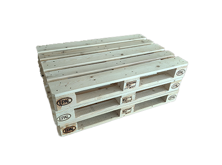 EPAL oval mark, EUR mark, IPPC quarantine mark branded on longitudinal beams, including production batch and origin traceability code |